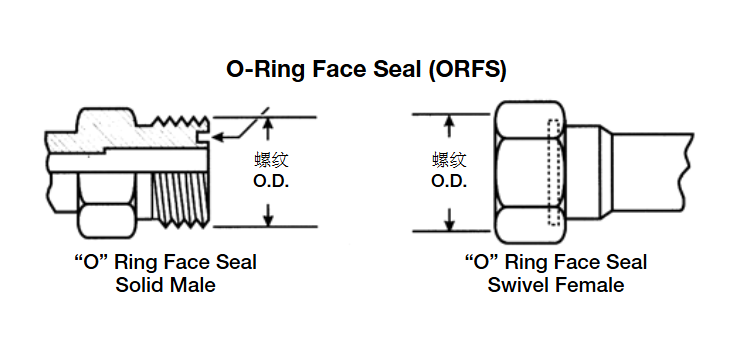 O形圈密封外螺紋僅與O型圈密封內(nèi)螺紋配合狀況,內(nèi)螺紋通常用在油口處機製性梗阻。