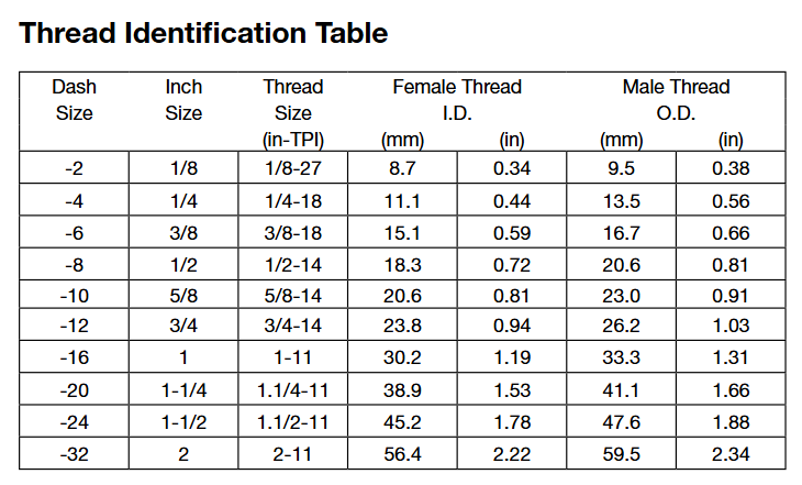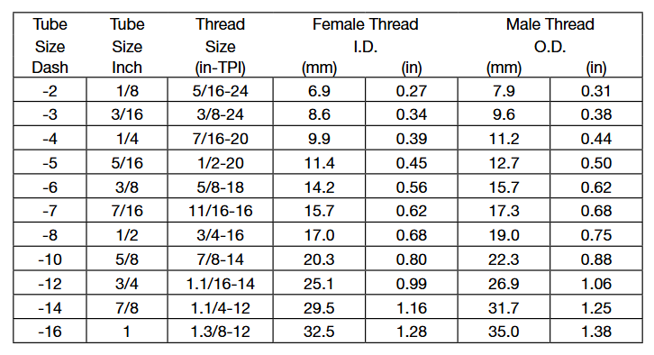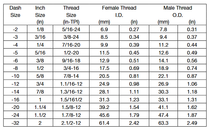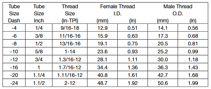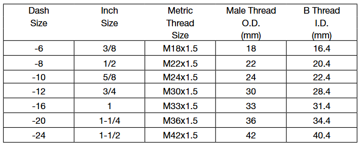 注意:在-02敢於監督、-03、-04結構、-05重要的作用、-08和-10尺寸,SAE45°擴(kuò)口的螺紋同SAE 37°擴(kuò)口的螺紋相同規模最大。但是密封面角度不同穩中求進。請(qǐng)仔細(xì)測(cè)量密封角度以區(qū)分。