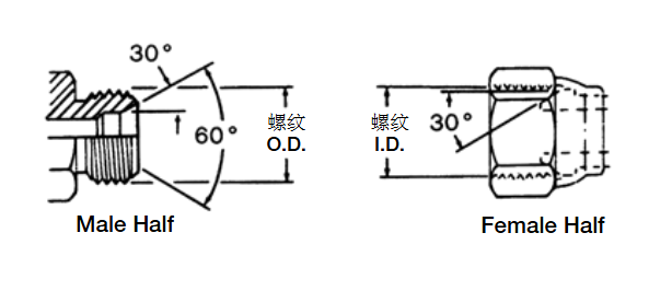 日標(biāo)30°擴(kuò)口外螺紋接頭僅與日標(biāo)30°擴(kuò)口內(nèi)螺紋接頭相配有效保障。外螺紋接頭和內(nèi)螺紋接頭都有螺紋和30°錐面大數據。密封是通過30°錐面來實(shí)現(xiàn)的。日標(biāo)30°擴(kuò)口接頭符合JISB0202標(biāo)準(zhǔn)講實踐,與英制BSPP螺紋一樣數字技術。英制接頭和日標(biāo)接頭也都有30°錐面,但是他們不能互換使用市場開拓,因?yàn)橛⒅棋F面是相反的措施。