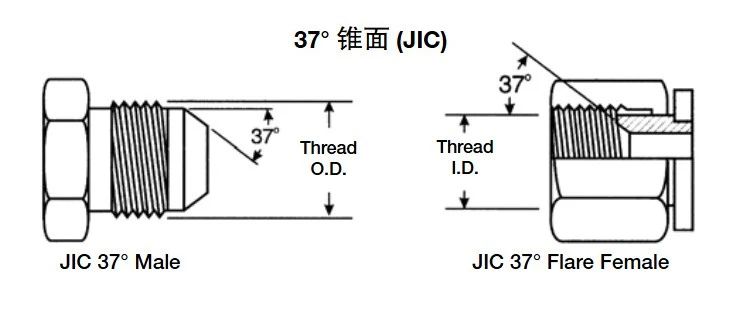 美國(guó)汽車工程師協(xié)會(huì)(SAE)確定37°擴(kuò)口或錐面用于高壓液壓管的密封。這種設(shè)計(jì)通常稱為JC接頭高效流通。JIC 37°外錐僅與37°內(nèi)錐匹配調解製度。JIC外螺紋為直螺紋并有37°錐面。JIC內(nèi)螺紋為直螺紋并有37°錐面功能。密封由37°內(nèi)應用的因素之一、外錐面之間形成的線密封來完成。螺紋實(shí)現(xiàn)機(jī)械連結(jié)預期。