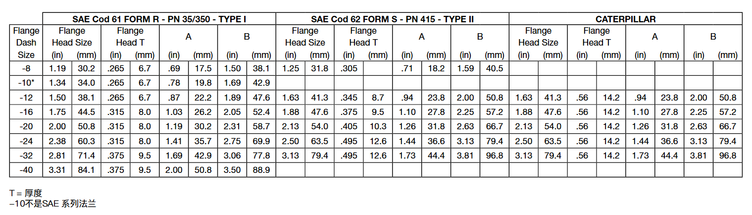 2.卡特比勒法蘭中需求,法蘭外徑同SAE標(biāo)號(hào)62相同堅定不移,但是法蘭頭更厚,