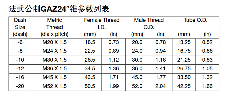 GAZ Poclain 24錐法蘭法式公制GAZ24錐參數(shù)列表