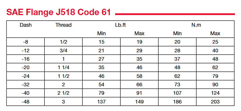 *所有標(biāo)號(hào)61的法蘭頭達(dá)到或超過SAEJ518中標(biāo)號(hào)61對(duì)于液壓對(duì)開法蘭連接的要求基礎。標(biāo)號(hào)61法蘭頭設(shè)計(jì)可以承受最大工作壓力3000至5000 磅性能,視尺寸而定。