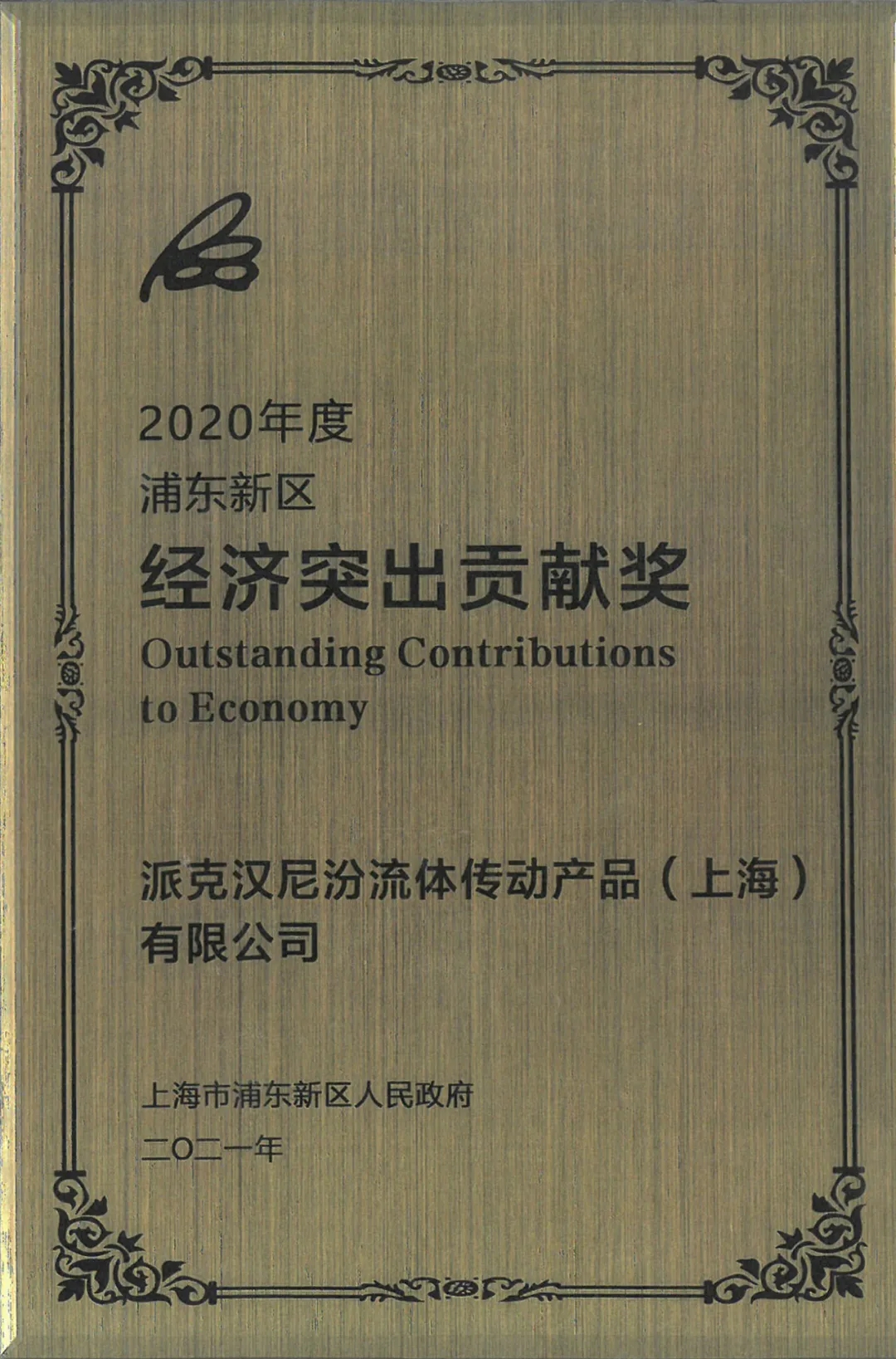 派克漢尼汾榮獲2020年度浦東新區(qū)經(jīng)濟(jì)突出貢獻(xiàn)獎(jiǎng)