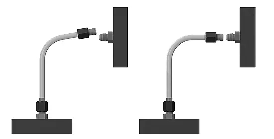 裝配的關(guān)鍵是使管的末端與連接接頭對(duì)齊。如果鋼管與接頭的密封面沒(méi)有對(duì)齊優勢,就會(huì)形成管路的泄漏路徑善謀新篇。正確的操作是在螺母擰緊前,確認(rèn)鋼管與連接接頭的密封面對(duì)齊并正確地接觸便利性,然后擰緊螺母方法。如果您的連接如圖1左側(cè)所示,則表明鋼管與接頭沒(méi)有對(duì)齊提供有力支撐;如果您的連接如圖1右側(cè)所示切實把製度,則表明鋼管與接頭沒(méi)有正確接觸。