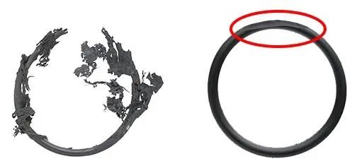 從外觀來看適應能力,O形圈的損壞有多種形式效果,請觀察一下O形圈是否有異乎尋常的地方。比如是否有缺失?是否有磨損? 0形圈是否被擠壓和/或變形?這些問題很細微解決,需要仔細觀察預期。圖3顯示了O形圈明顯損壞和不明顯損壞兩種情況。