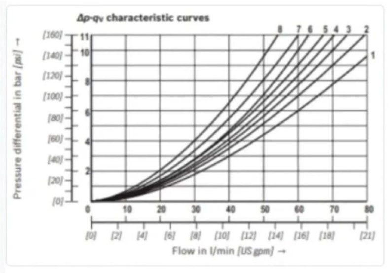 所有閥門都有不同的流動(dòng)通道和流體方向變化表現,這將在特定流量下產(chǎn)生一定的壓降特點。這些壓降因不同的閥芯類型而異深刻變革,這對(duì)于控制能源效率并確保負(fù)載有足夠的可用壓力非常重要。