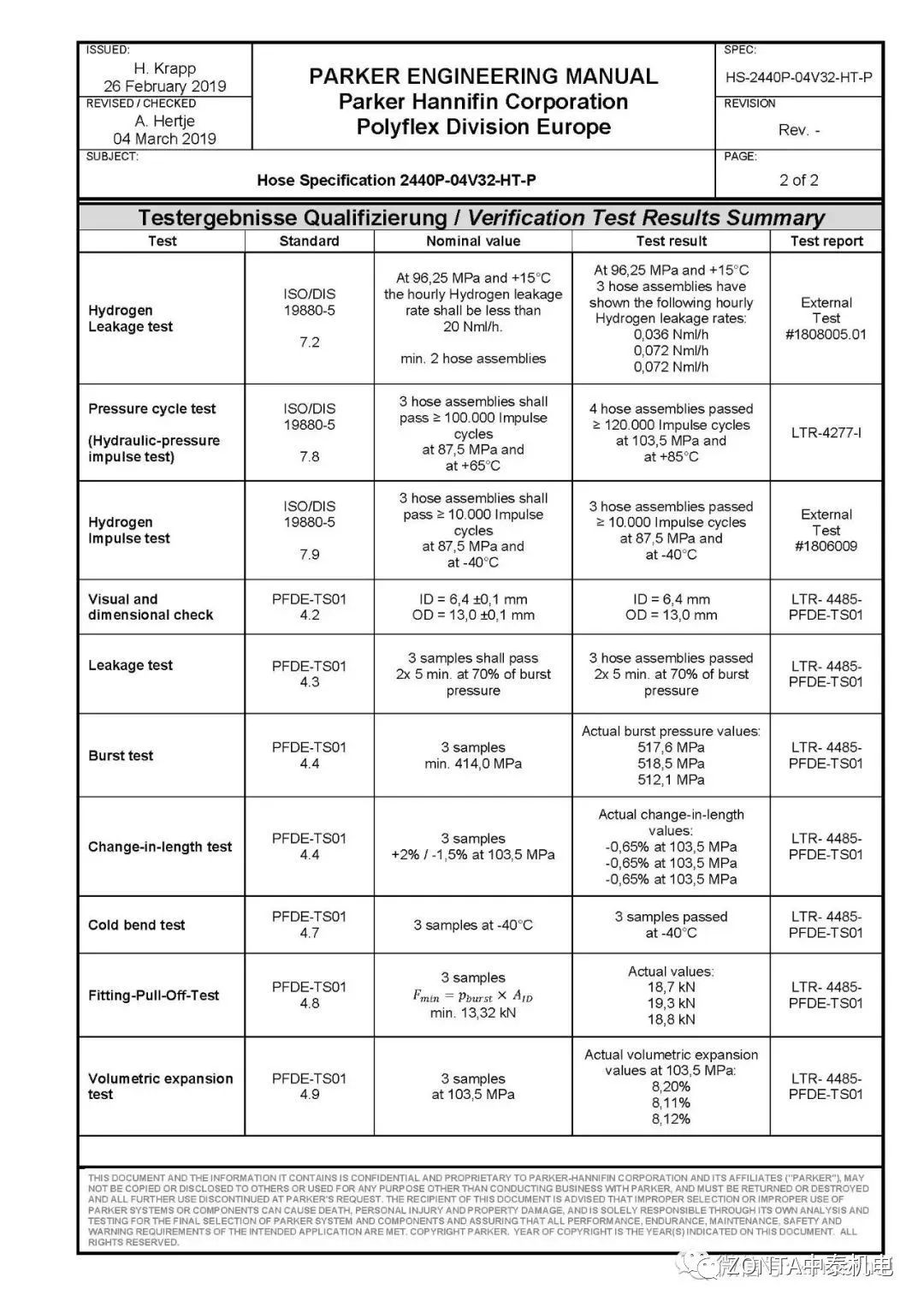 派克2440P-04V32-HT-P氫氣軟管工作壓力高達(dá)875bar發展目標奮鬥,符合ISO-19880-5 要求雙重提升,可在-40℃的低溫環(huán)境下實(shí)現(xiàn)快速加氫空白區。該軟管具有很高的耐磨性自主研發、很好的耐臭氧能力不要畏懼、很強(qiáng)的抗紫外線能力積極回應、壽命周期長(zhǎng)關註,適合于戶外安裝應(yīng)用實事求是。另外其小彎曲半徑的特點(diǎn)使其可應(yīng)用于狹小的安裝空間貢獻法治。最后設備製造,該軟管不但能有效降低氫氣滲透,還能顯著提升氫氣系統(tǒng)運(yùn)行的安全高質量,是氫能源系統(tǒng)的理想選擇相對簡便。